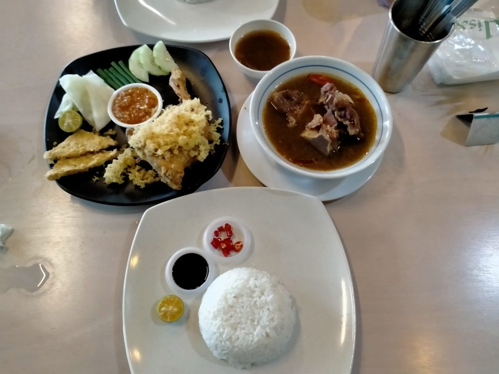 Lelapan, sup tulang,nasi cmpo dan breakfast meal.